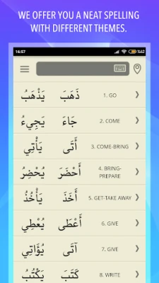 "بیسک وربز اِن عربک" ایپ عربی زبان کے طلباء کے لیے ایک بہترین ذریعہ ہے۔ یہ سب سے زیادہ استعمال ہونے والے بنیادی افعال اور ان کی تمام گردانوں کا جامع مجموعہ پیش کرتی ہے، تاکہ آپ عربی سیکھنے کے عمل کو مزید آسان بنا سکیں۔