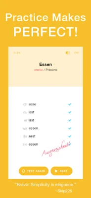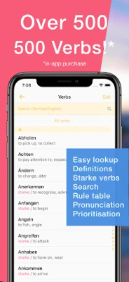 Conjuu کے ساتھ، آپ 500 سے زیادہ عام جرمن فعل کے لیے صحیح اختتام (endings) کو آسانی سے تلاش کر سکتے ہیں۔ اس کی وسیع فعل کی میز (verb table) ہر قسم کے مطالعہ کے لیے ایک قیمتی حوالہ ہے۔ اس میں ایک بلٹ اِن جرمن-انگریزی لغت بھی شامل ہے جو آپ کو الفاظ کے معنی سمجھنے کے ساتھ ساتھ ان کے مختلف شکلوں کو بھی تلاش کرنے کی صلاحیت دیتی ہے۔ Conjuu کا ذہین ٹیسٹنگ سسٹم خاص طور پر ان فعل پر توجہ مرکوز کرتا ہے جن میں آپ کو زیادہ مشق کی ضرورت ہوتی ہے، اس بات کو یقینی بناتے ہوئے کہ آپ کا وقت مؤثر طریقے سے استعمال ہو۔ فعل کی درست تلفظ کی رہنمائی بھی آپ کو اعتماد کے ساتھ بات کرنے میں مدد دیتی ہے۔