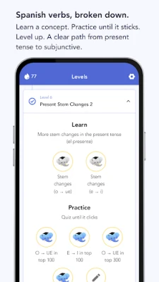 Ella Verbs: Learn Spanish ہسپانوی فعل سیکھنے اور ان کی گردان کو سمجھنے میں آپ کی مدد کرتا ہے۔ روانی سے ہسپانوی بولنے کا اعتماد حاصل کریں۔ یہ ایپ یاد کرنے کے بجائے سمجھنے پر توجہ مرکوز کرتی ہے، اور 50 سطحوں کے ساتھ منظم طریقہ فراہم کرتی ہے۔