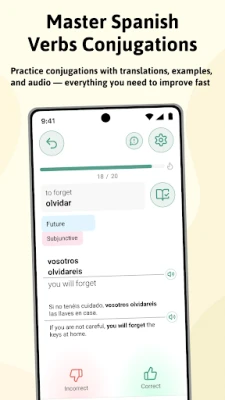 ہسپانوی فعل کی گردان میں مہارت حاصل کرنے کے لیے ReVerbo آپ کا بہترین ساتھی ہے۔ یہ ایک دلکش گیم جیسی مشق فراہم کرتا ہے جسے مکمل طور پر آف لائن استعمال کیا جا سکتا ہے، تاکہ آپ جب چاہیں اور جہاں چاہیں اپنی زبان کی مہارت کو فروغ دے سکیں۔ پیچیدہ فعل کی شکلوں کو یاد رکھنا اب کوئی مشکل کام نہیں رہے گا۔ ReVerbo آپ کو فعال یادداشت کے لیے فلیش کارڈز، پہچان کو مضبوط بنانے کے لیے متعدد انتخابی سوالات، اور صحیح املا کو پختہ کرنے کے لیے ٹائپنگ مشقوں سمیت متعدد تعلیمی طریقوں سے سیکھنے کا موقع دیتا ہے۔ یہ آپ کے سیکھنے کے سفر کو موثر اور پرلطف بناتا ہے۔