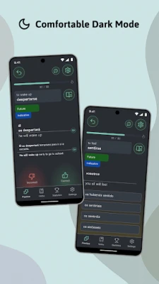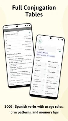 ReVerbo ہسپانوی زبان کے دونوں لہجوں، یورپی اور لاطینی امریکی، کی حمایت کرتا ہے؛ آپ محض سیٹنگز میں "vosotros" کو آن یا آف کر کے اپنے ہدف والے لہجے کے مطابق سیٹ کر سکتے ہیں، اور تمام گردان کی آڈیو اور مثالی جملے خود بخود اس کے مطابق ڈھل جائیں گے۔ یہ ایپ طلباء، خود مختار سیکھنے والوں، اور ہسپانوی بولنے والے ممالک کا سفر کرنے والوں سمیت ہر قسم کے صارفین کے لیے موزوں ہے۔ تمام اہم زمانوں اور کیفیات (موڈز) کی گردانیں اس میں شامل ہیں، جیسے کہ حال، ماضی، مستقبل، شرطیہ، اور سبجیکٹو، جو کل 24 مختلف زمانوں اور کیفیات کے مجموعوں کا احاطہ کرتی ہیں۔ آپ مکمل طور پر آف لائن رسائی کا فائدہ اٹھا سکتے ہیں، جس کا مطلب ہے کہ آپ کو انٹرنیٹ کنکشن کی ضرورت نہیں ہے۔ اس کے صاف ستھرے، بدیہی انٹرفیس کا لطف اٹھائیں اور کم روشنی میں آرام دہ تجربے کے لیے ڈارک موڈ پر سوئچ کریں۔ ReVerbo کے ساتھ، آپ ہسپانوی فعل کے استعمال میں حقیقی اعتماد پیدا کریں گے، چاہے آپ امتحانات جیسے کہ DELE کی تیاری کر رہے ہوں یا روزمرہ کی گفتگو کے لیے۔